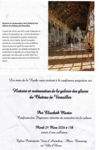 La prochaine rencontre arau lieu le mardi 24 mars 2026 à 15h00 au 02 allée Anglicane à Arcachon sur le thème: Histoire et restauration de la galerie des glaces du château de Versailles.
